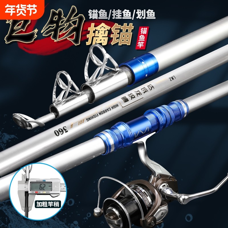 锚鱼竿超轻超硬锚杆渔轮专业远投竿海竿全金属全套大物碳素