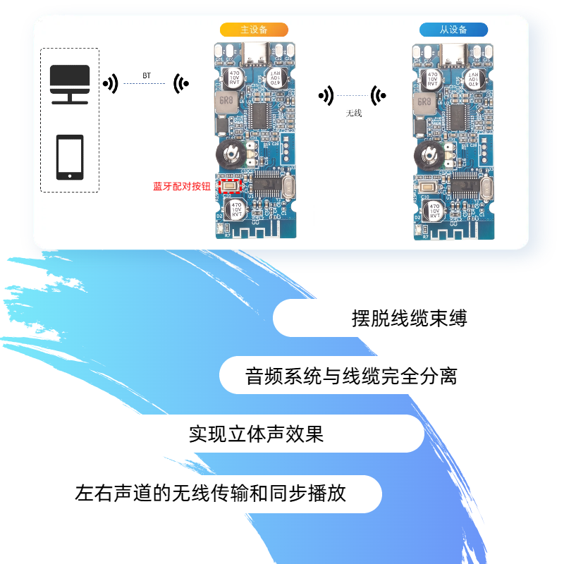 蓝牙5.0音频模块 立体声TWS功放板2x6W蓝牙功放板放大模块供电5V