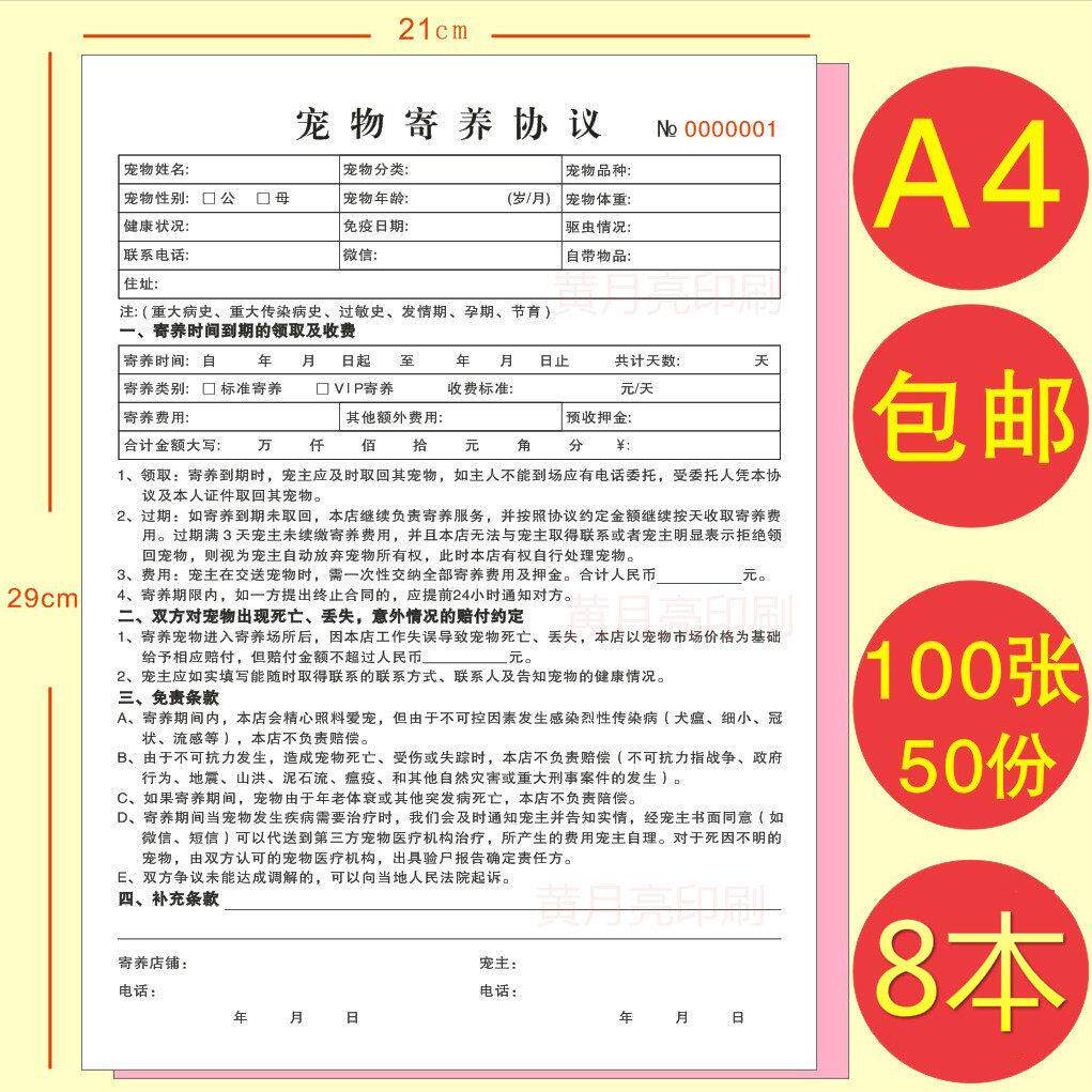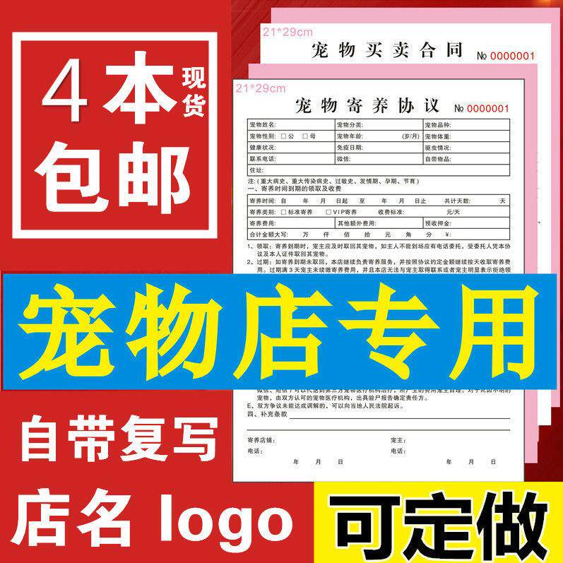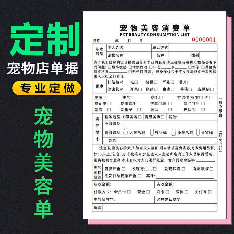 宠物美容流水消费单据登记表寄养协议合同宠物店接待订制收据定做
