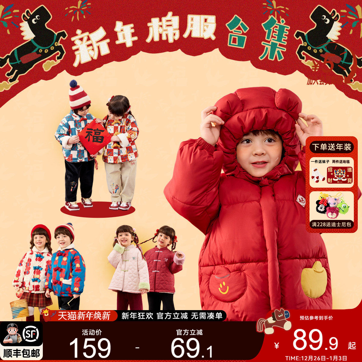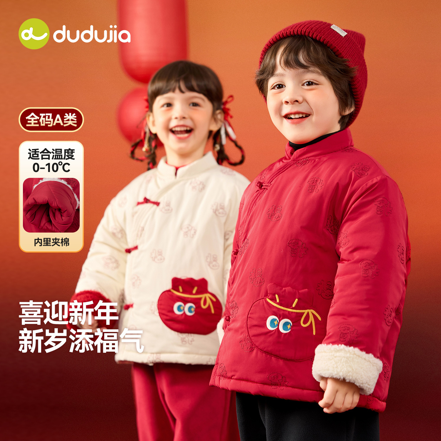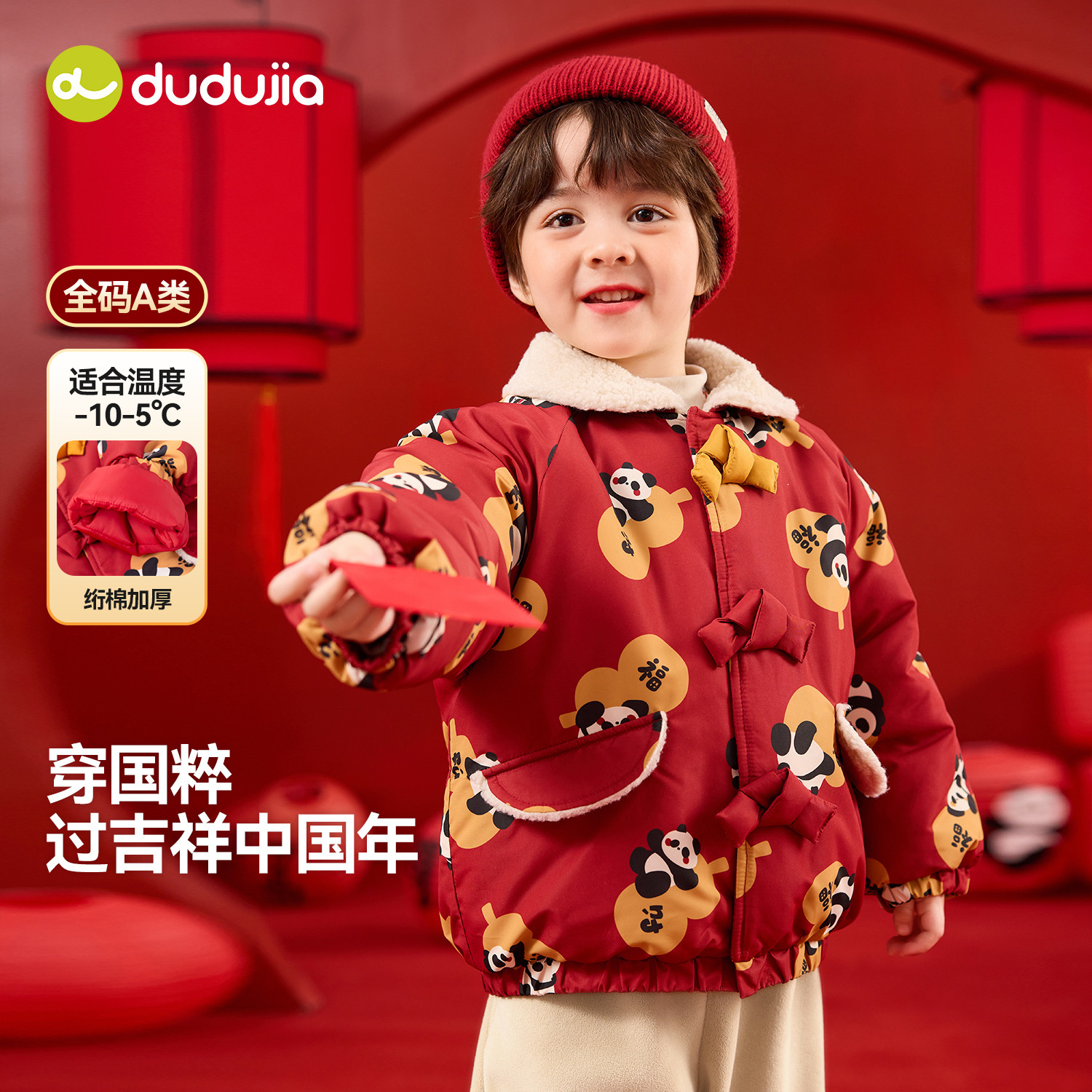 dudujia童装宝宝棉服红色冬季儿童拜年服国风男童棉袄喜庆衣服a类