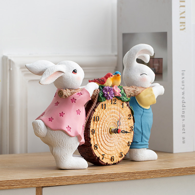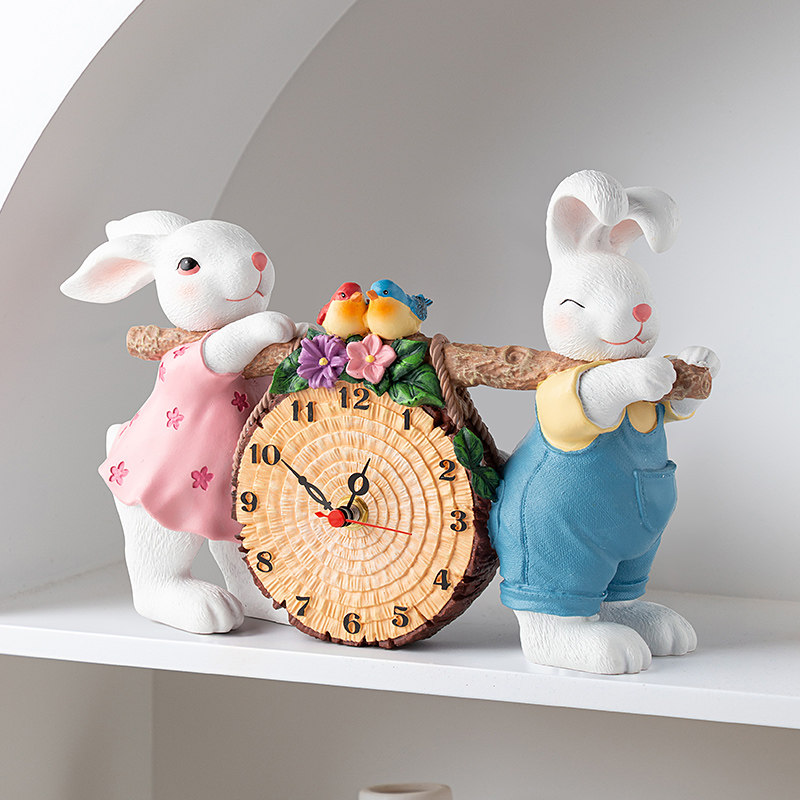 慧心巧聚台钟桌面座钟电视柜装饰钟表家居饰品摆件装饰钟客厅兔子