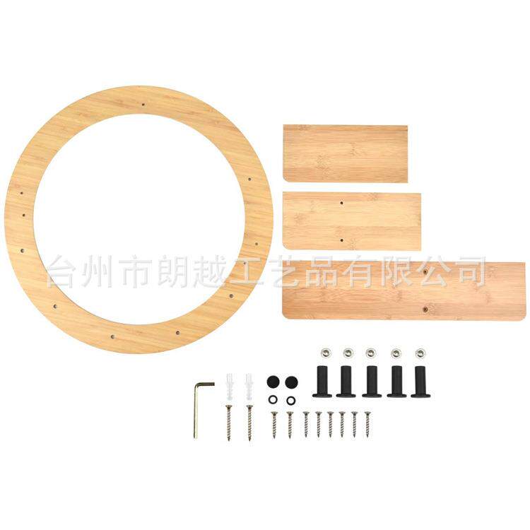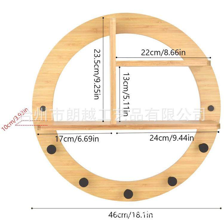 壁挂式装饰圆形木质浮架带搁板的玄关墙架挂钩原木色壁挂置物架