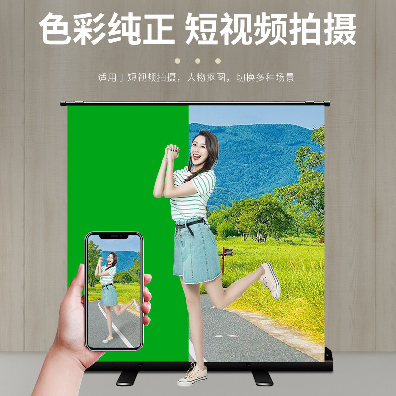 地拉式绿幕抠像布直播间背景墙布拍照摄影升降支架抠图视频3D特效