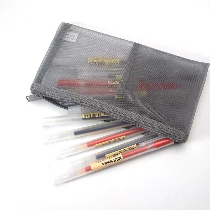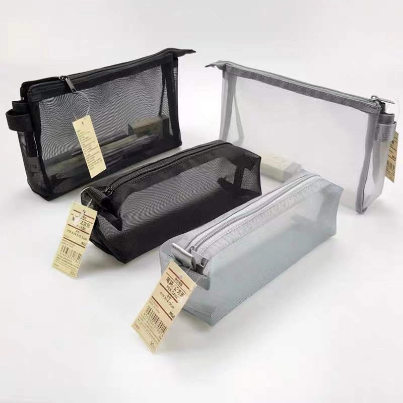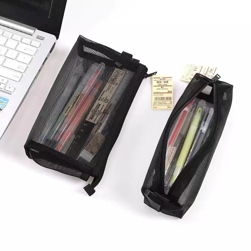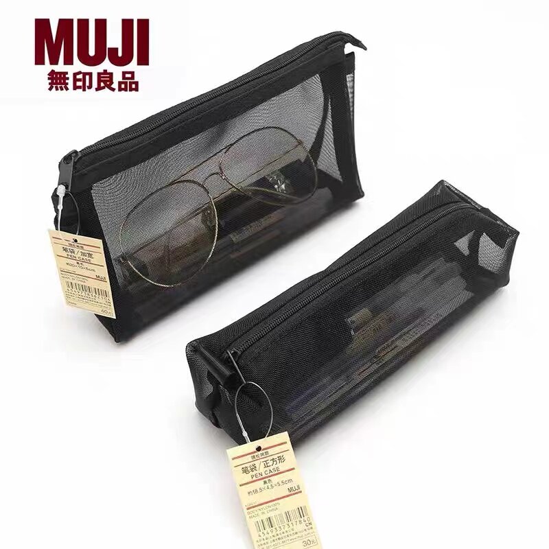 日本MUJI无印良品文具透明网纱铅笔考试学生用男女简约大容量笔袋