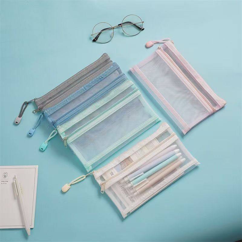 透明网纱笔袋尼龙文具袋大容量可带入考场铅笔袋女孩小学生初中生