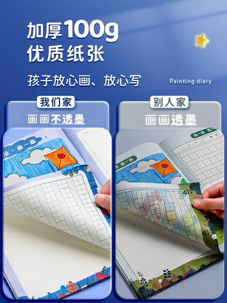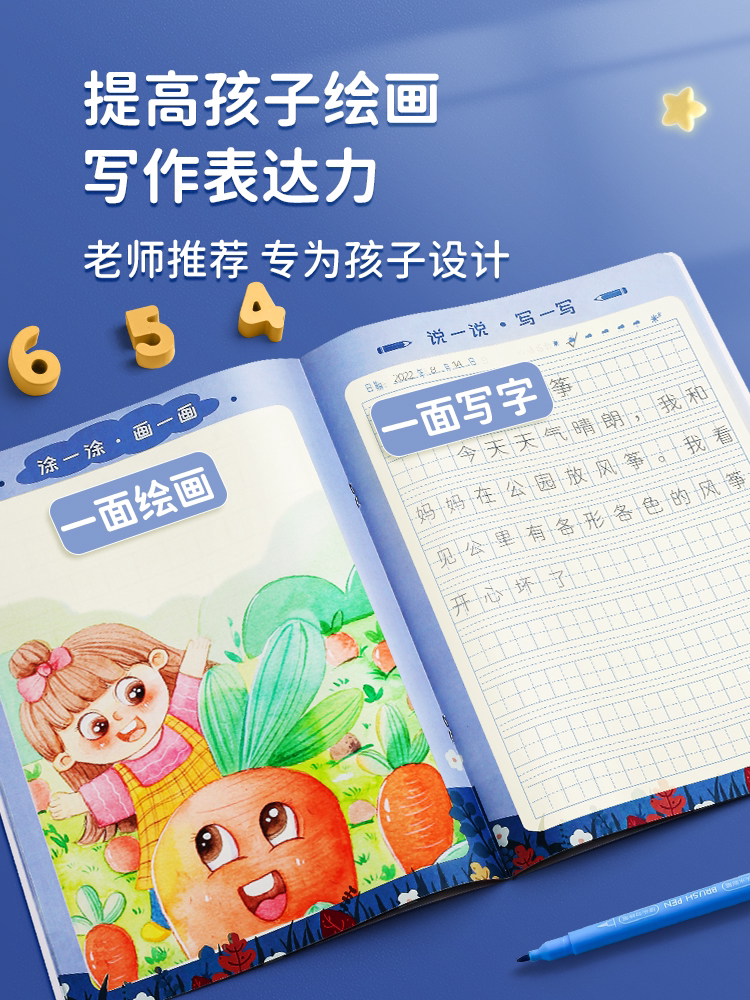 绘画日记本小学生一年级二年级幼儿园看图写话儿童画图写话本一天一画田字格少儿图文女孩图画本子周记男孩