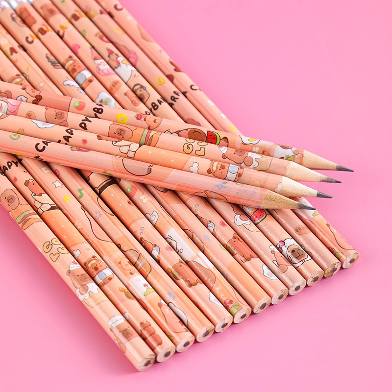 卡皮巴拉铅笔小学生专用幼儿园初学者写字笔儿童安全hb圆杆铅笔一二年级练字学习文具素描笔原木绘画笔