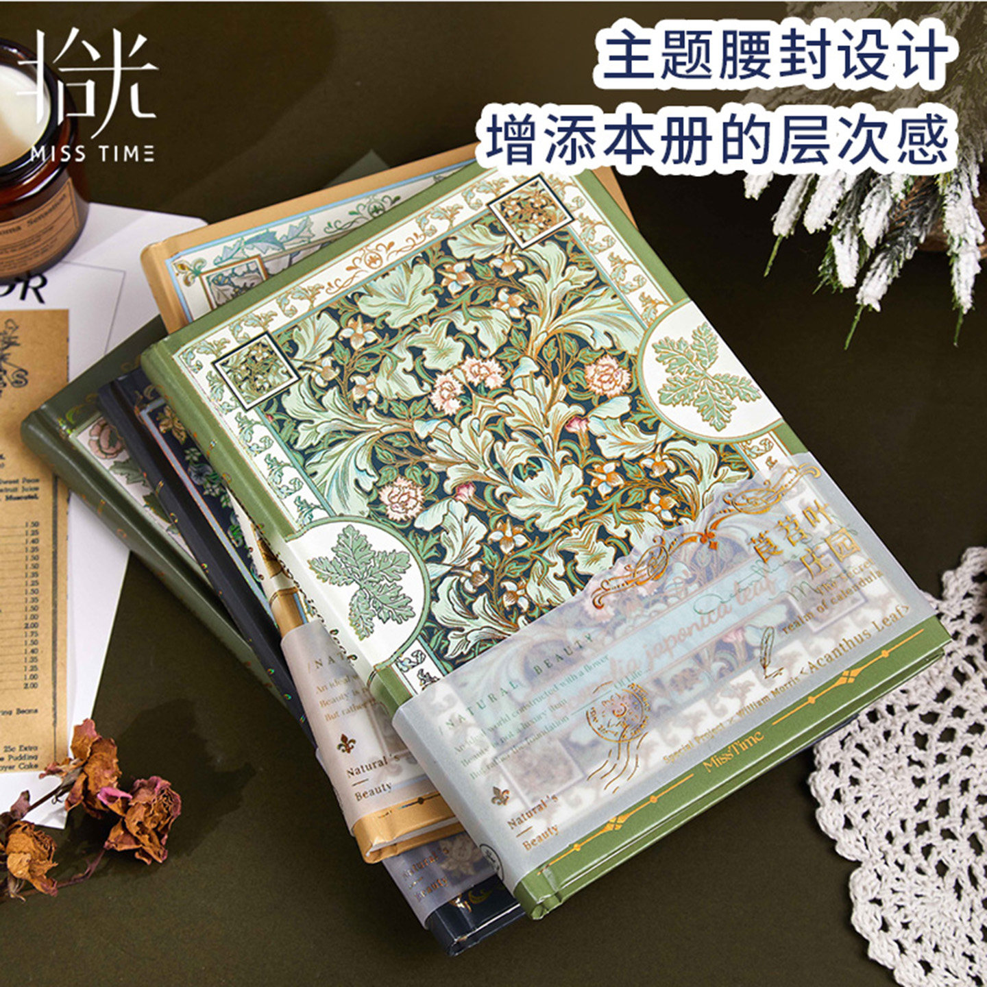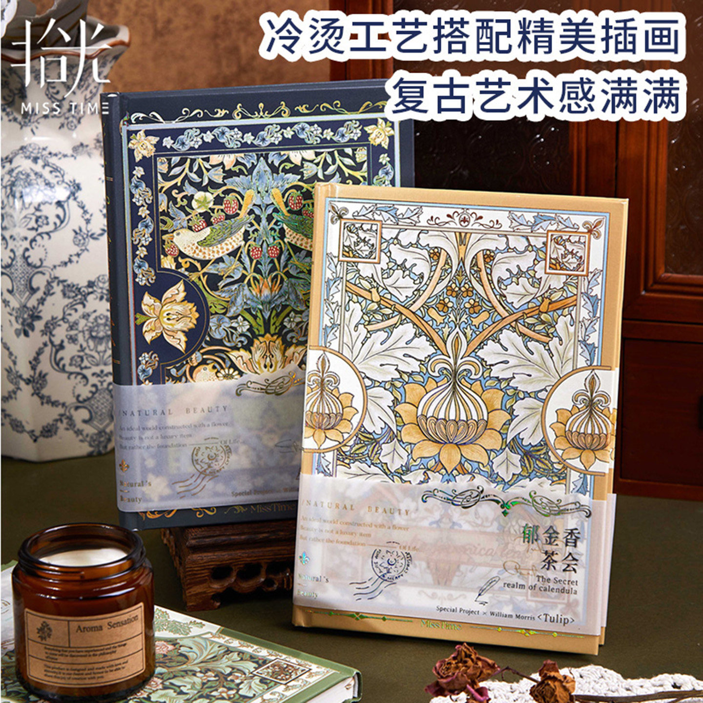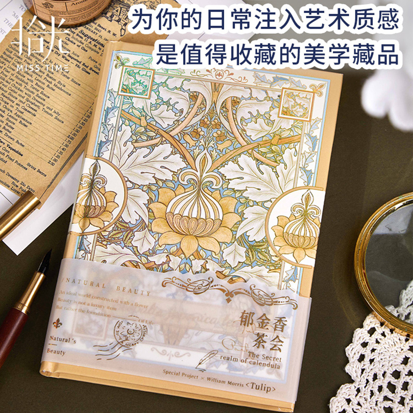 拾光复古郁金香花鸟图案A5冷烫精装本带腰封文艺青年必入记事本