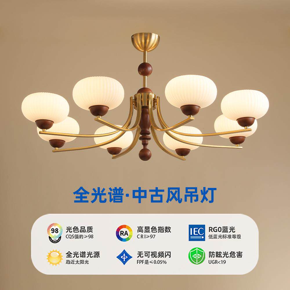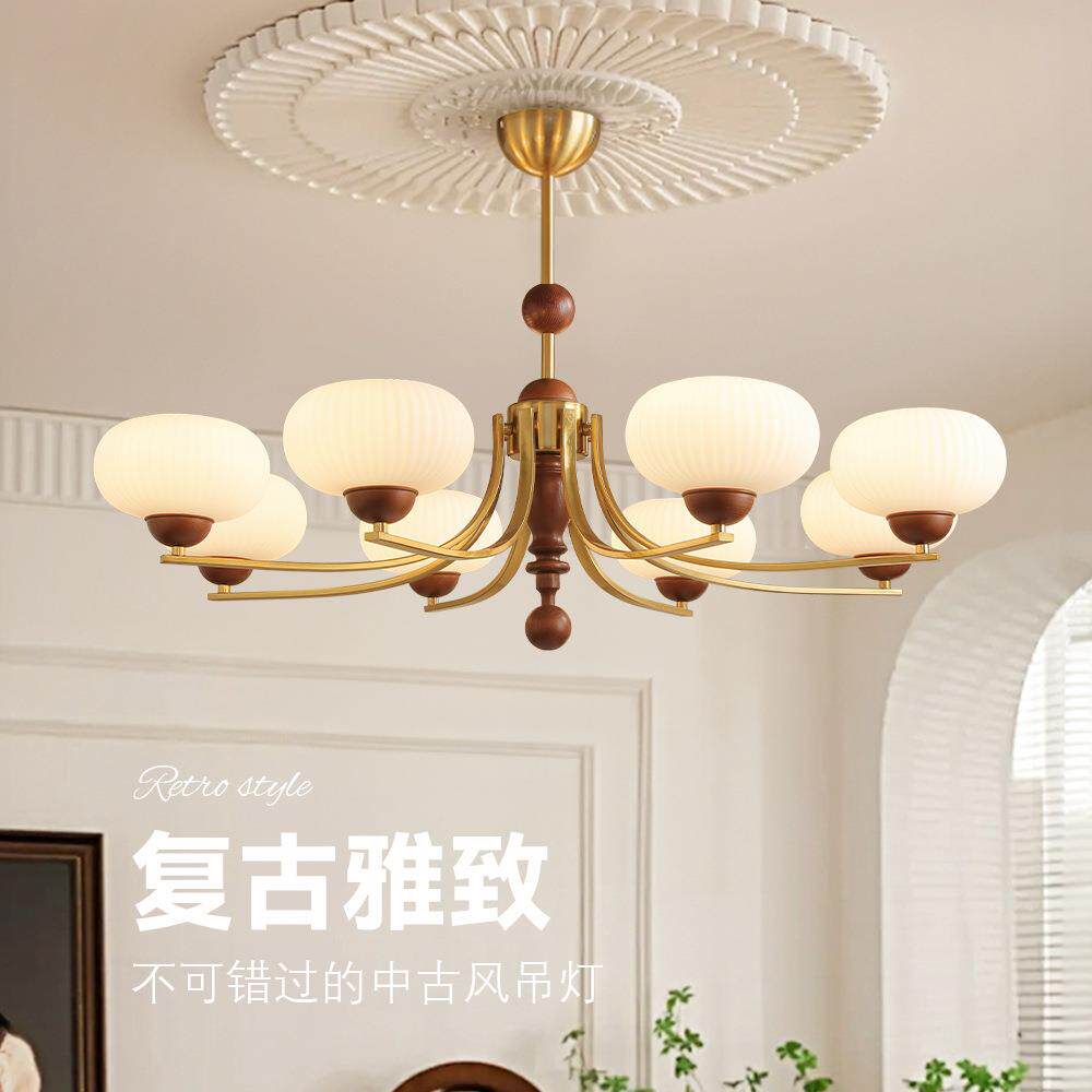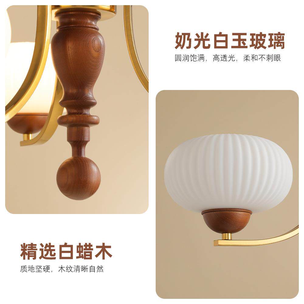 中古客厅吊灯美式复古风胡桃木色餐厅大厅卧室灯具实木风吸吊两用