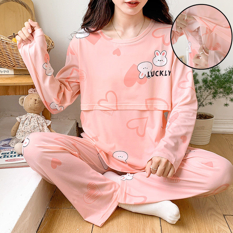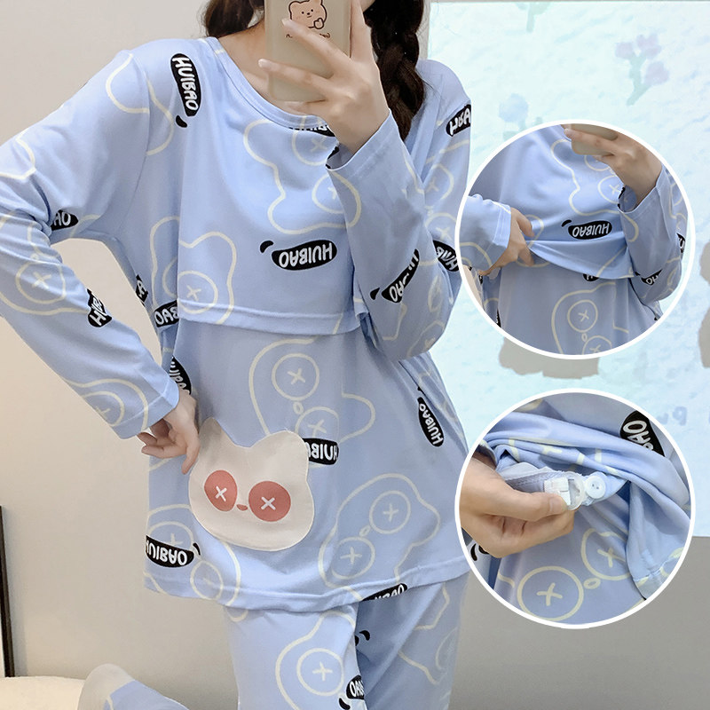 月子服睡衣春秋哺乳产妇孕妇上掀母乳带胸垫薄款夏季产后喂奶专用
