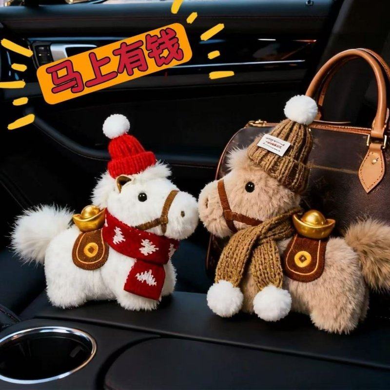 2026马年吉祥物公仔马上有钱小马毛绒玩偶新年礼物汽车车挂摆件