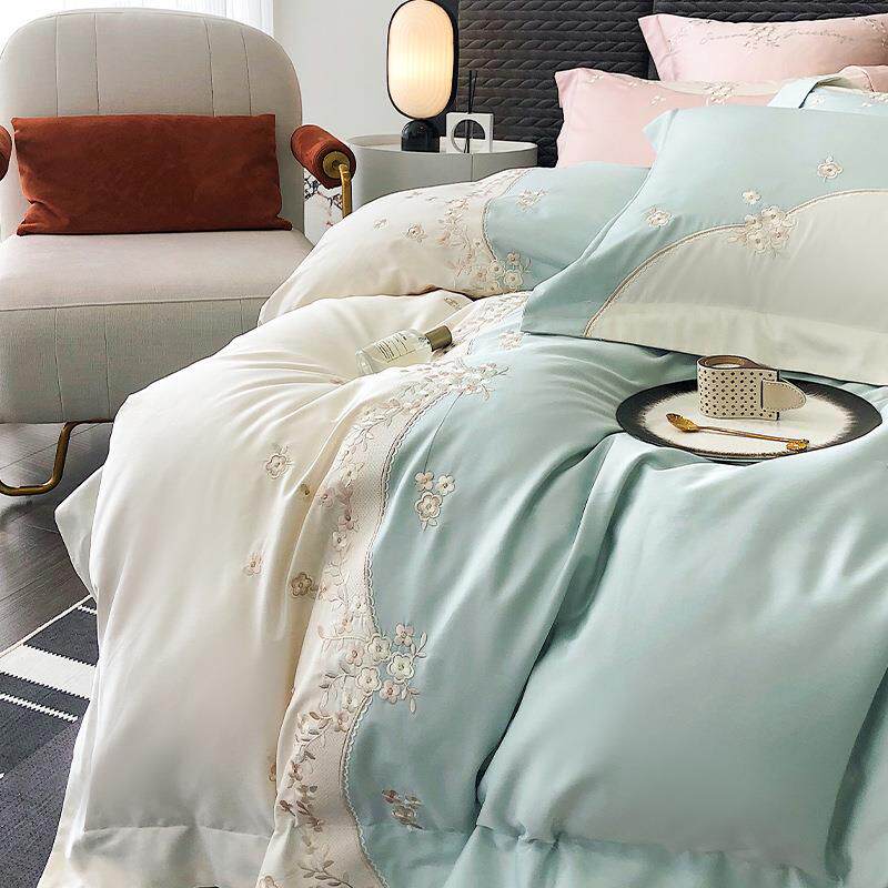 A类母婴级纯棉100支长绒棉四件套全棉少女公主风绣花南通床上用品