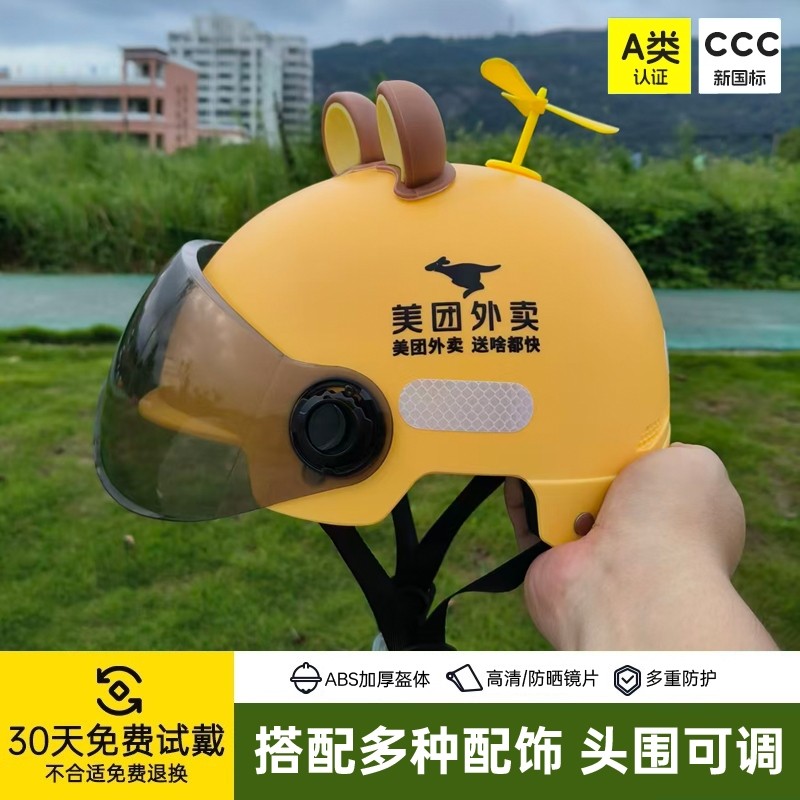 美团外卖头盔骑手秋冬季电动车内衬可调节3c认证微笑包四季通用过