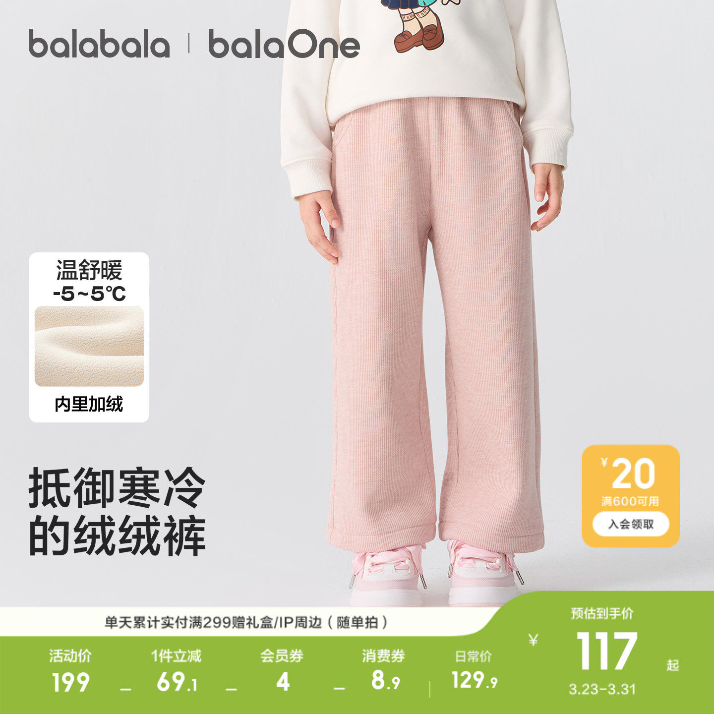 巴拉巴拉童装女童加绒直筒儿童裤子2026冬装休闲保暖加厚羽绒长裤