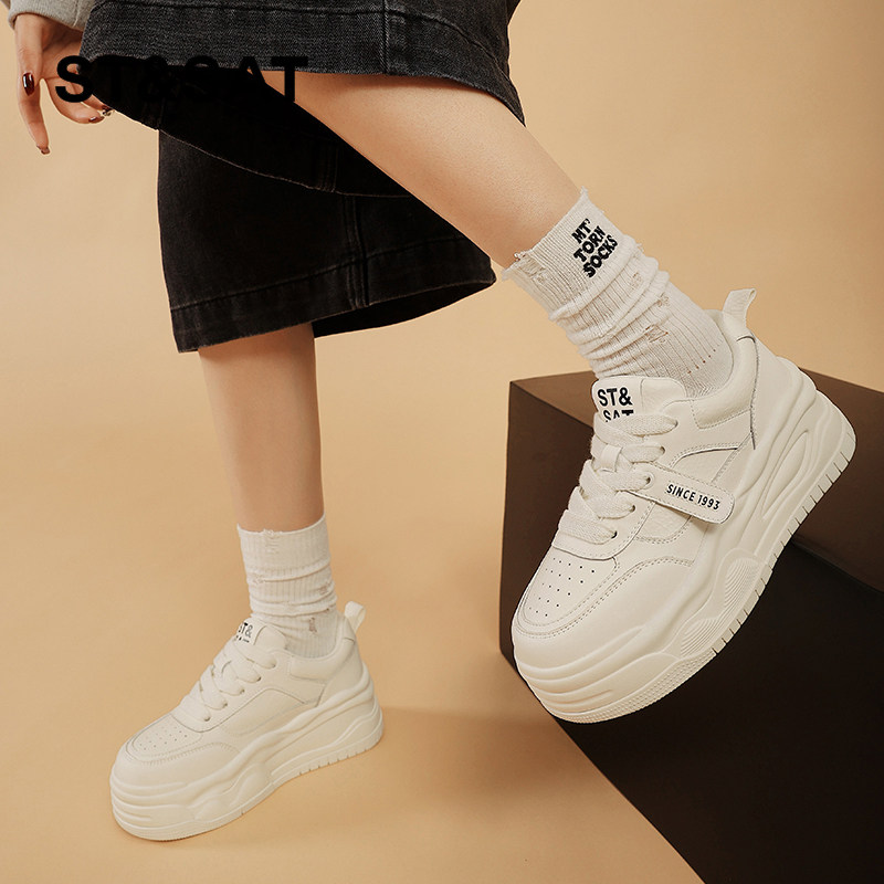 星期六小白鞋女鞋春季新款增高厚底板鞋女士小个子透气运动面包鞋