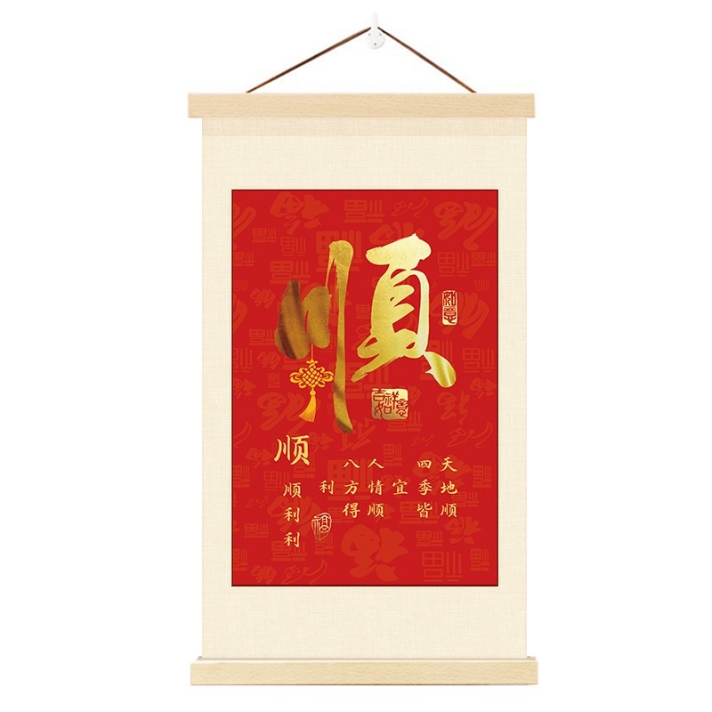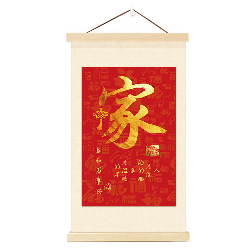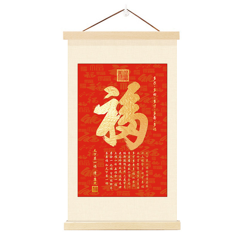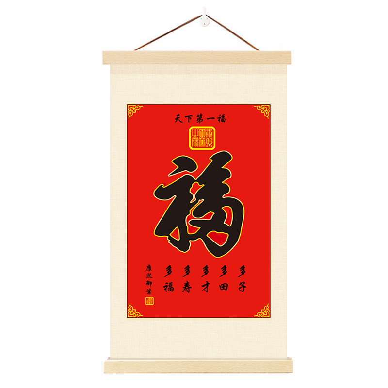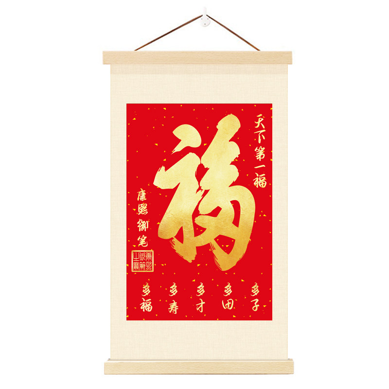 福字卷轴中堂挂画新中式客厅书房三联吉祥字画农村堂屋大气装饰画