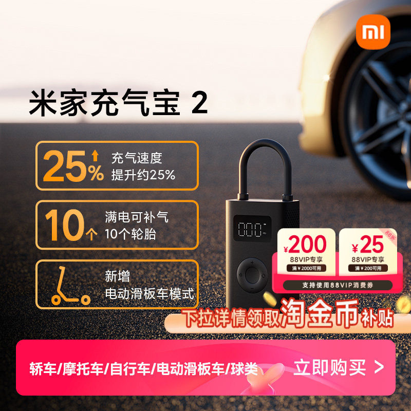 小米米家充气宝2Pro充气泵便携式汽车车载充气泵打气泵电动打气筒