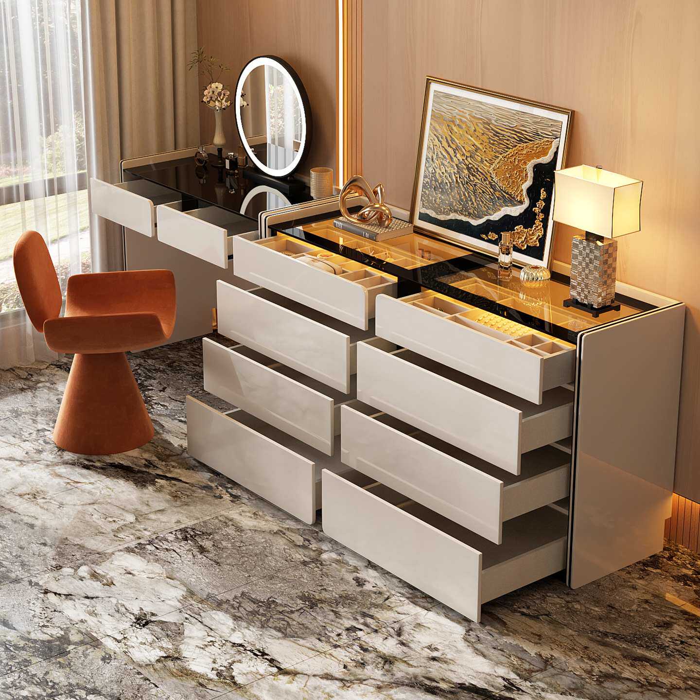 意式轻奢八斗柜梳妆台斗柜一体卧室组合化妆桌床现代尾收纳首饰柜