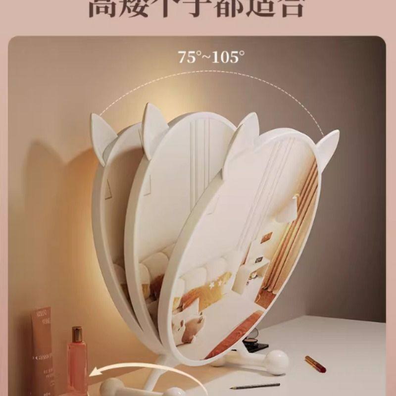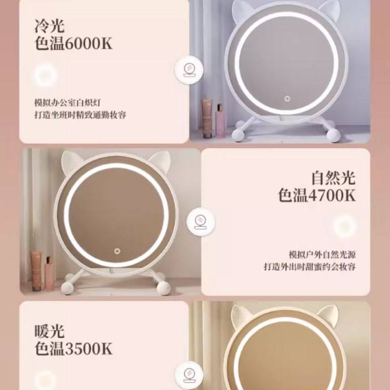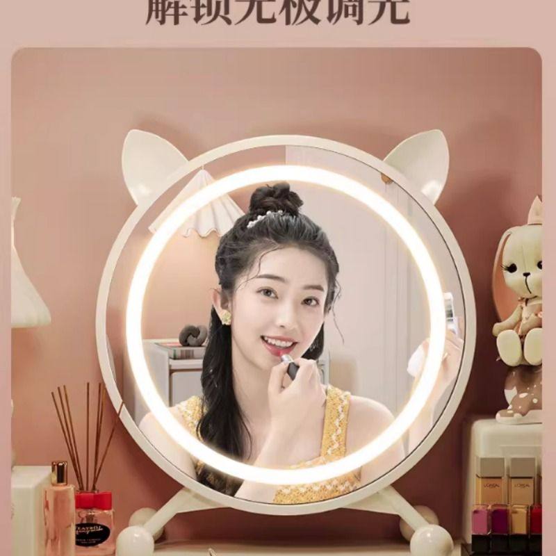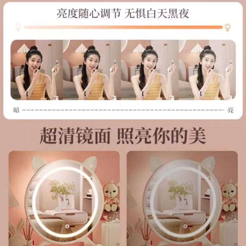 黑色智能化妆镜带灯家用卧室梳妆台大镜子学生宿舍桌面台式梳妆镜