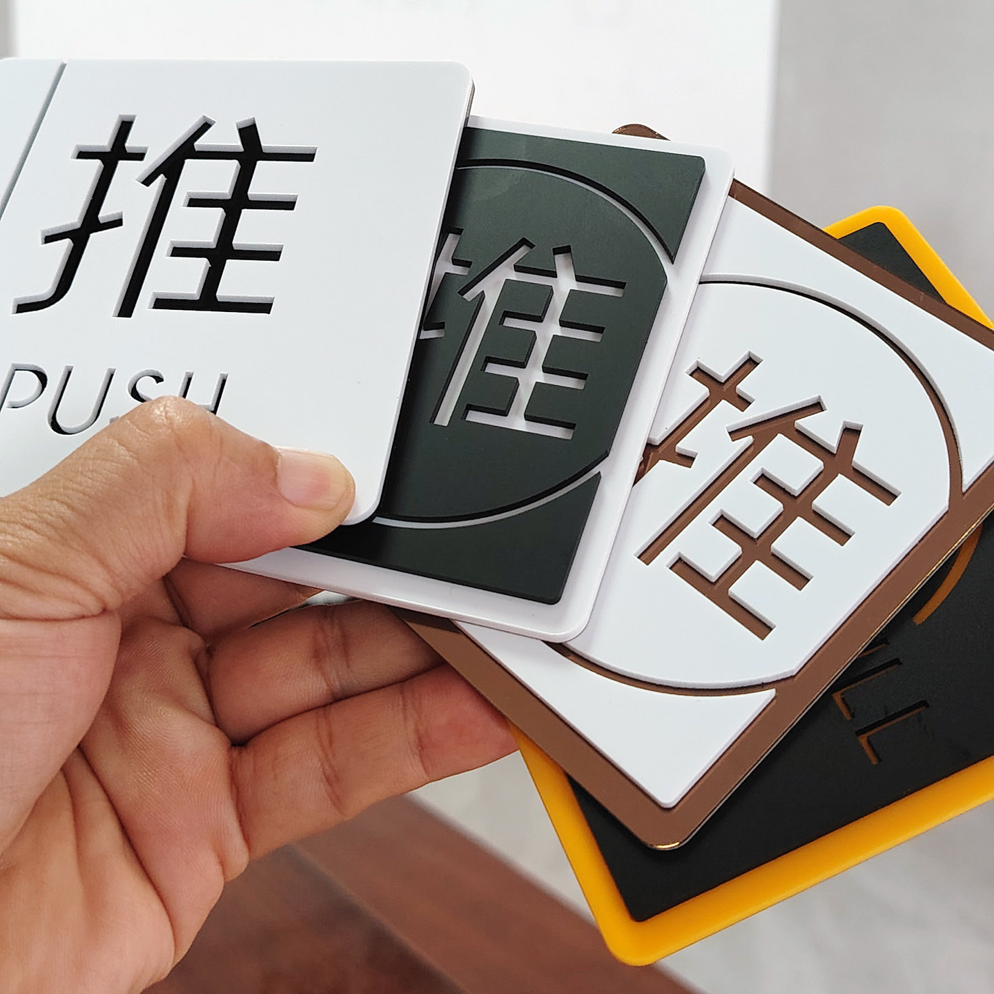 亚克力推拉门贴门口玻璃门提示牌店铺门上门店左右移门拉字指示