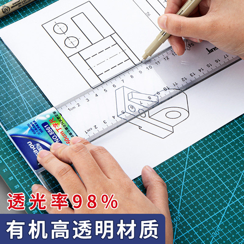 丁字尺土木机械工程制图绘图板专用工具45cm60cm90cm80cm120cm尺子直尺t字T型尺有机塑料透明玻璃尺考研神器