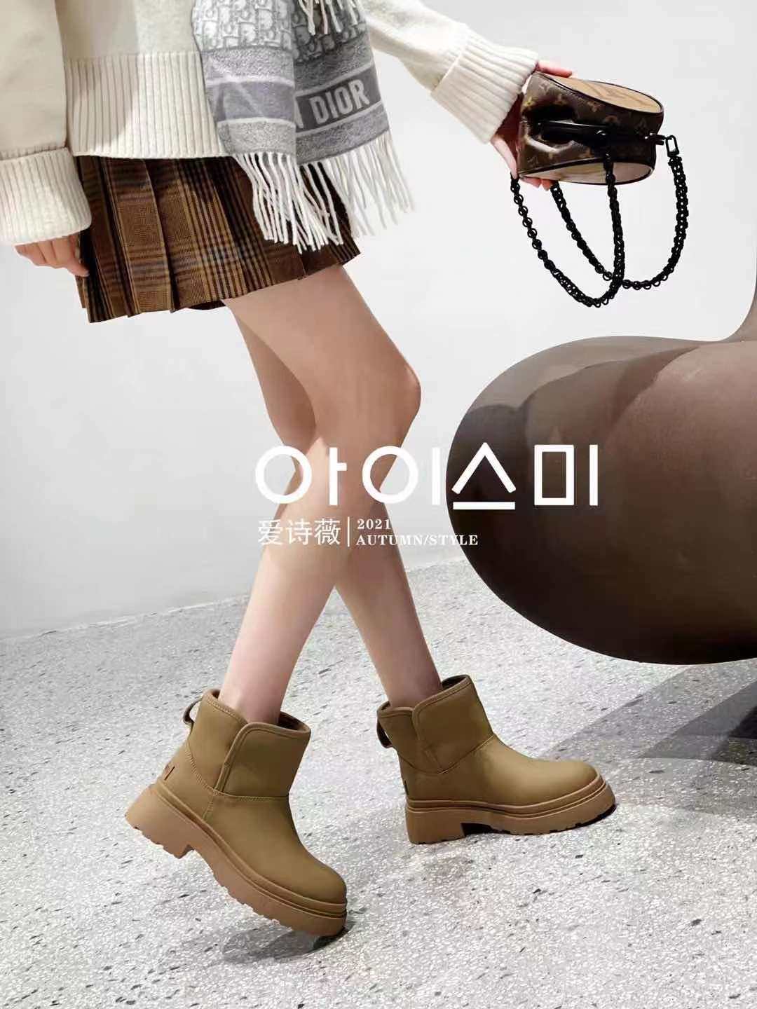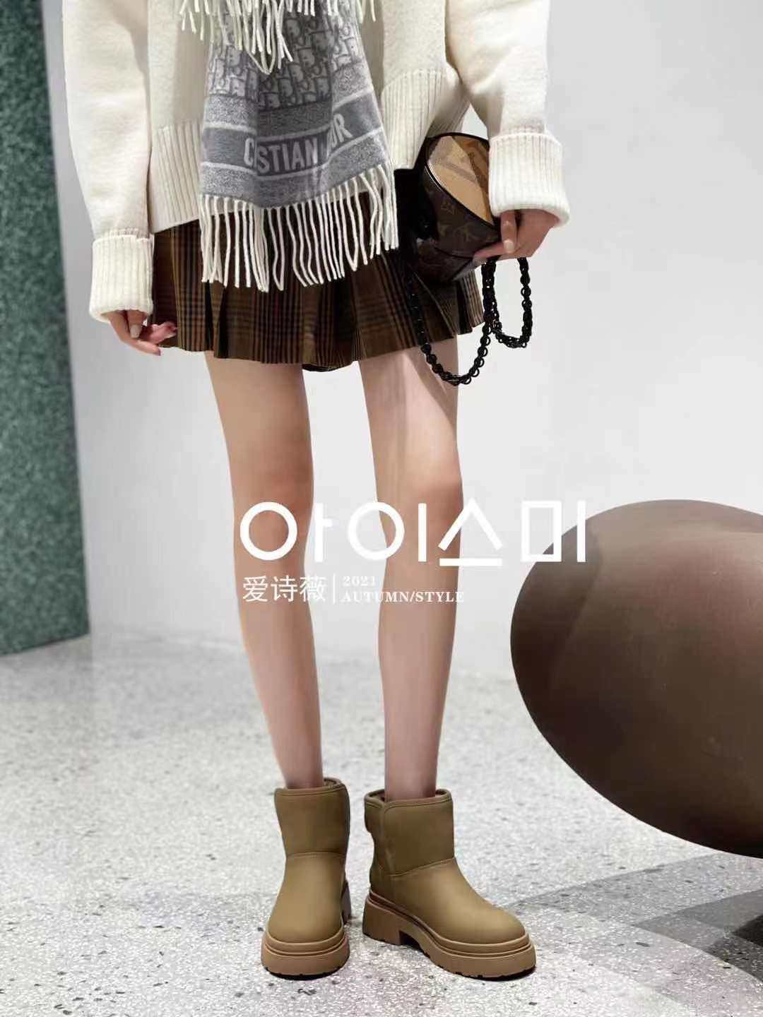 MANMANS欧货爱诗薇时髦雪地靴 防水丝绸牛皮皮毛一体短筒靴女