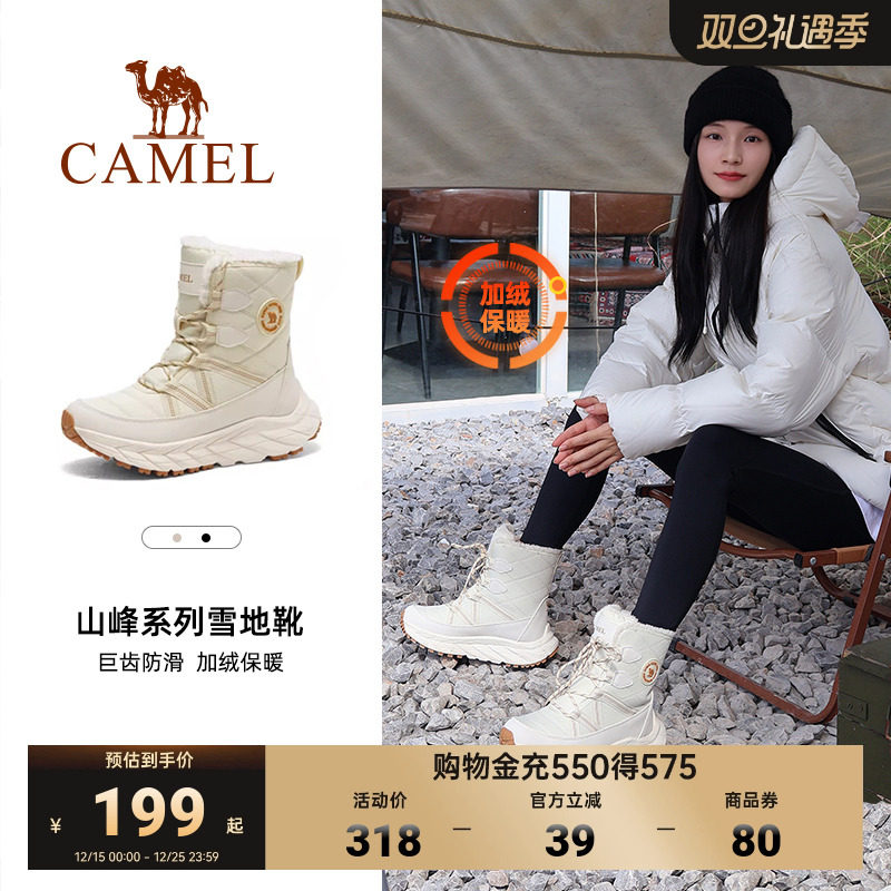 骆驼雪地靴女户外2025冬季新款厚底登山靴子防寒加绒保暖徒步鞋