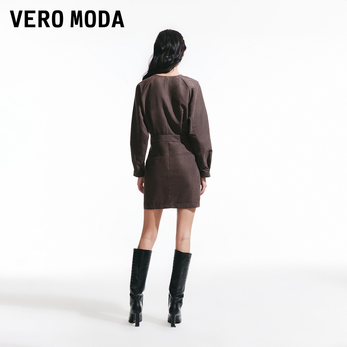 Vero Moda奥莱连衣裙秋冬新款H版收腰时尚美拉德圆领长袖短裙子