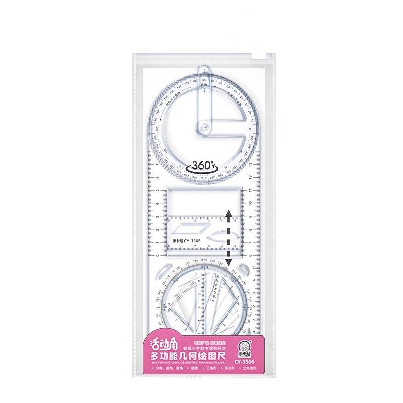 活动角多功能几何绘图尺小学生画角量角器几何图形模板尺平面图尺