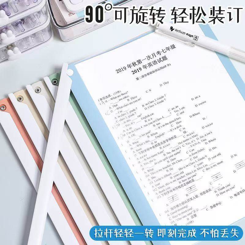 旋转拉杆夹文件夹小学生专用开学必备文具a4纸收纳夹试卷夹抽杆夹资料夹文件袋活页夹整理夹收纳袋透明科目