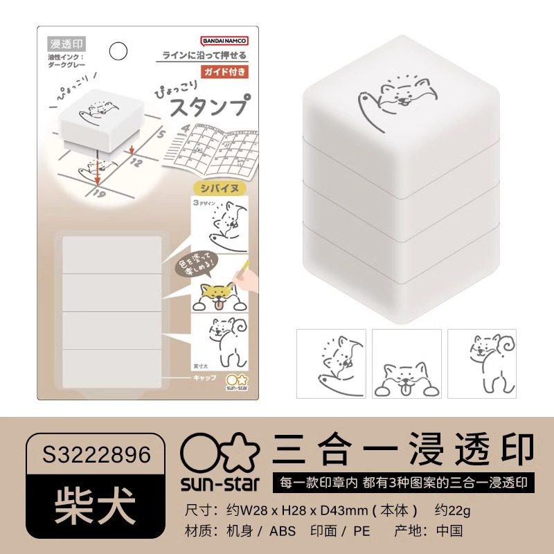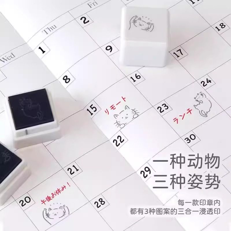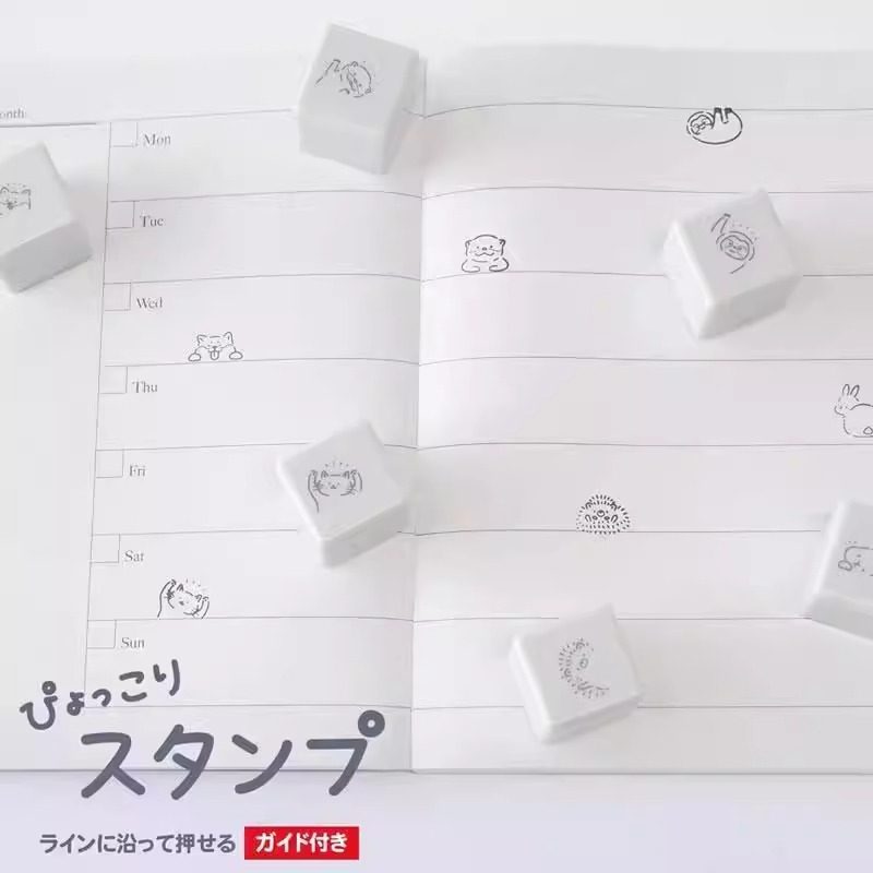 日本文具大赏sunstar太阳星可爱线条动物印章手帐装饰可涂色浸透