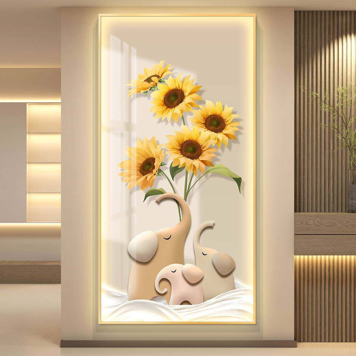 轻奢led带灯入户玄关装饰画走廊过道挂画壁画简约现代奶油风小象