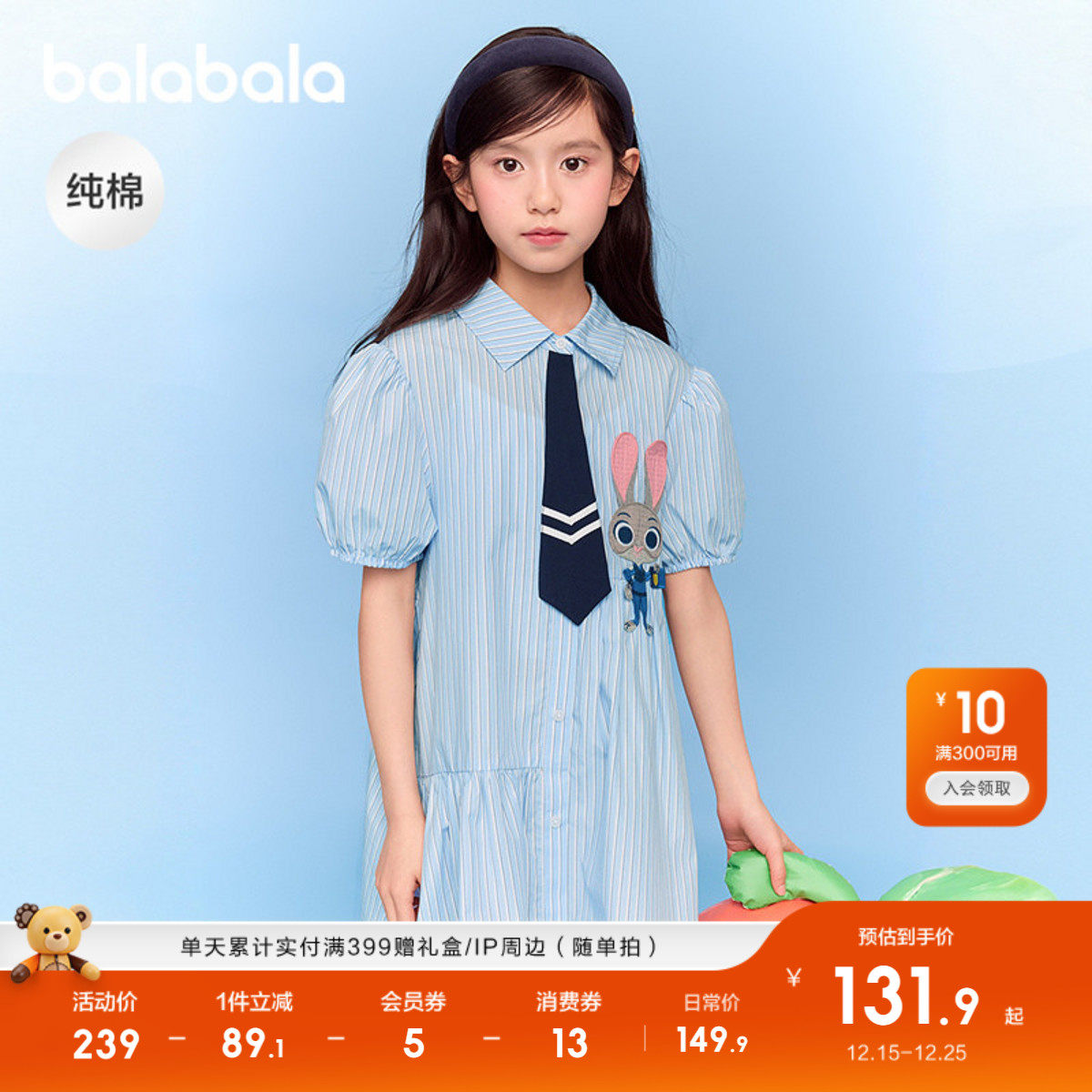 【疯狂动物城】巴拉巴拉女童裙子儿童连衣裙2025新款夏装衬衫裙子