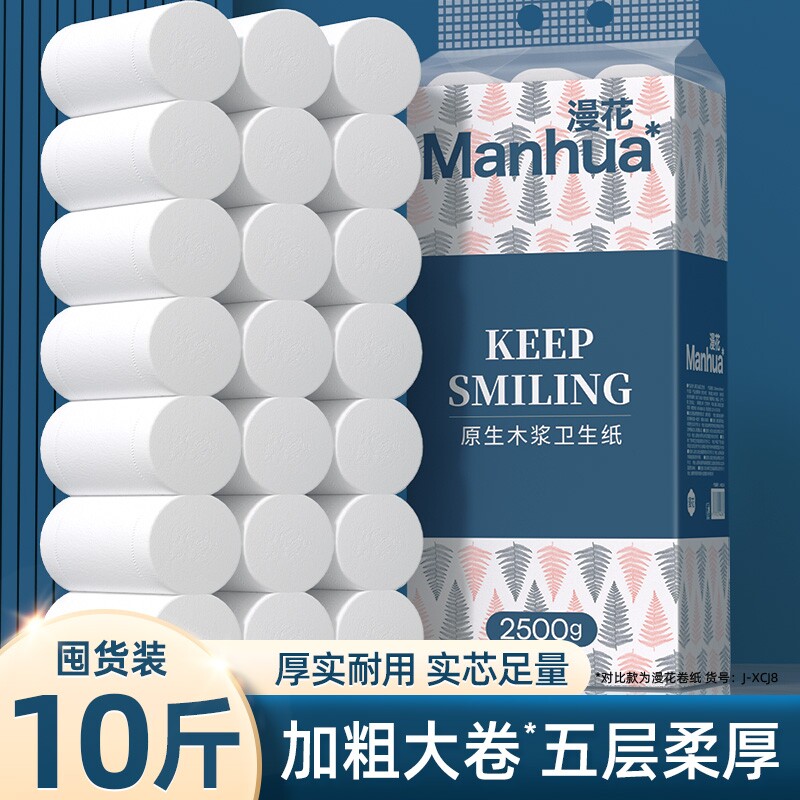 漫花卫生纸卷纸纸巾实惠装家用整箱10斤大粗5层无芯卷筒厕纸手纸