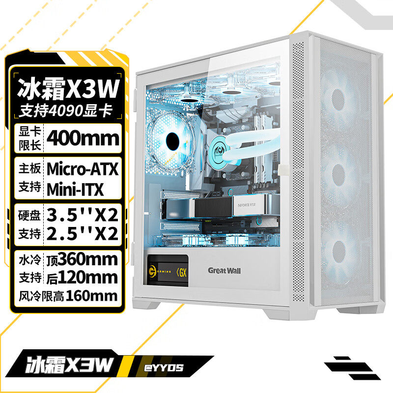 长城机箱冰霜X3侧透金牌电源650wP6/X6/P7台式机箱电源套餐750w