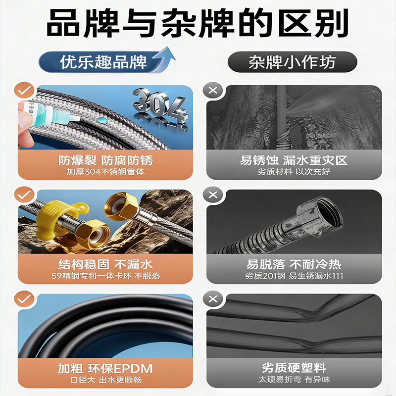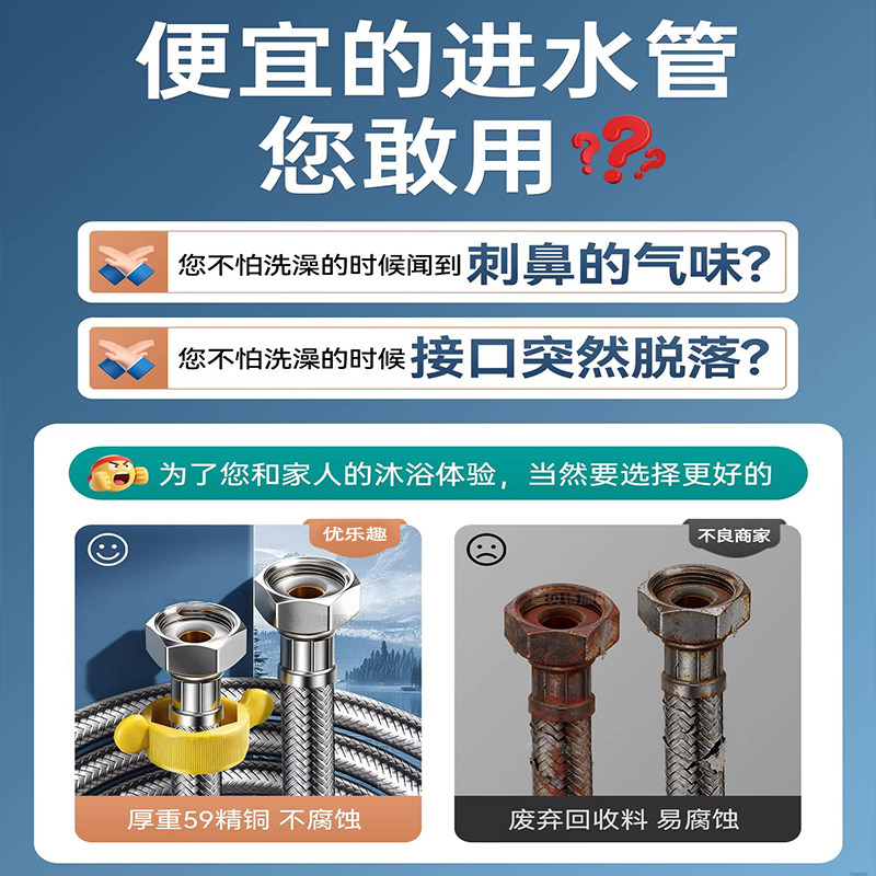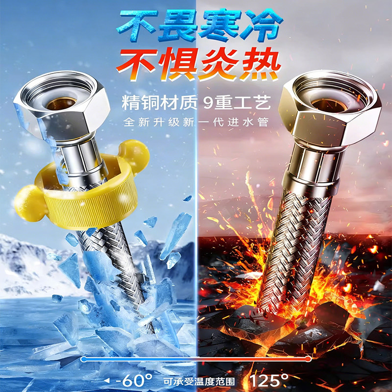 304不锈钢铜进水管4分马桶热水器冷热水管高压软管钢丝厨房连接