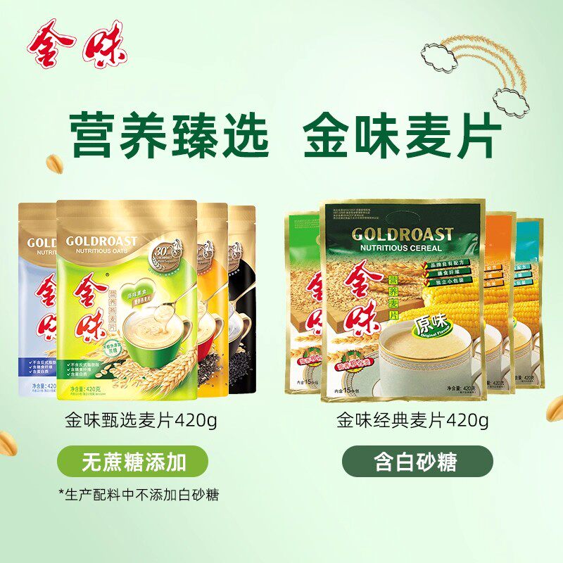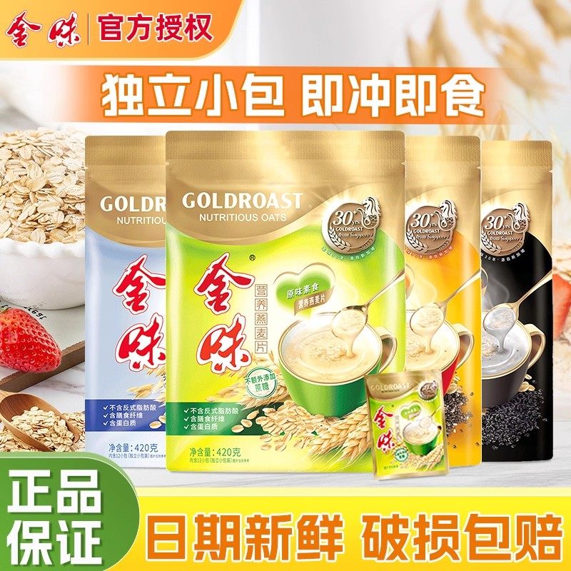 金味麦片原味冲饮速溶即食免煮燕麦营养早餐袋装420g*3袋
