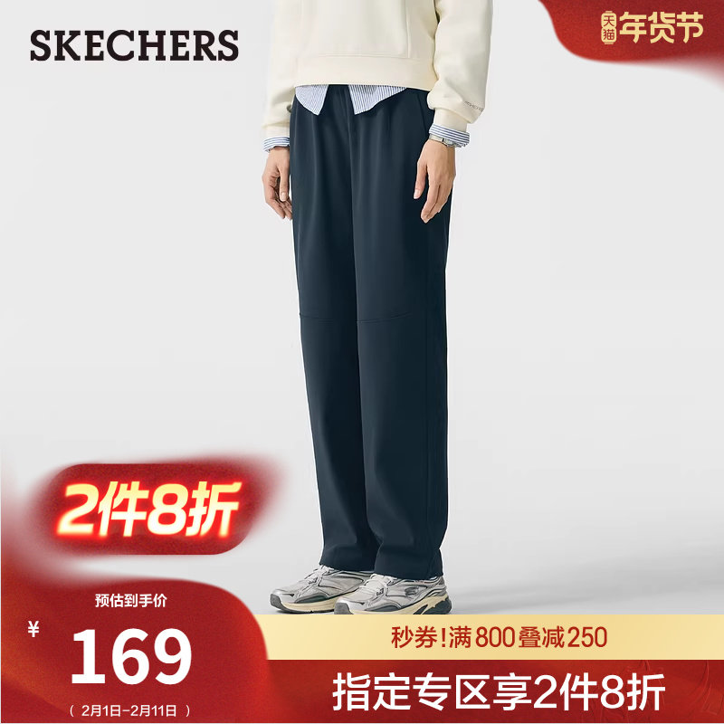 斯凯奇春季流行时尚女士直筒长裤防泼水加绒休闲运动裤阔腿裤卫裤