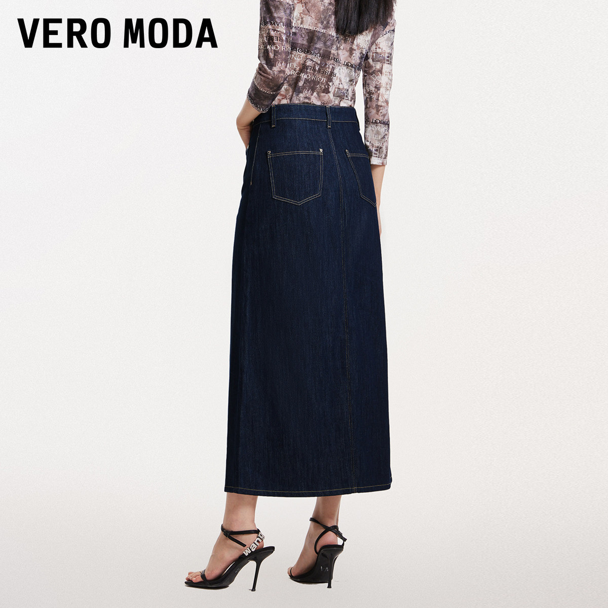 Vero Moda奥莱半身裙夏季新款纯棉休闲百搭中长款开叉牛仔裙流行