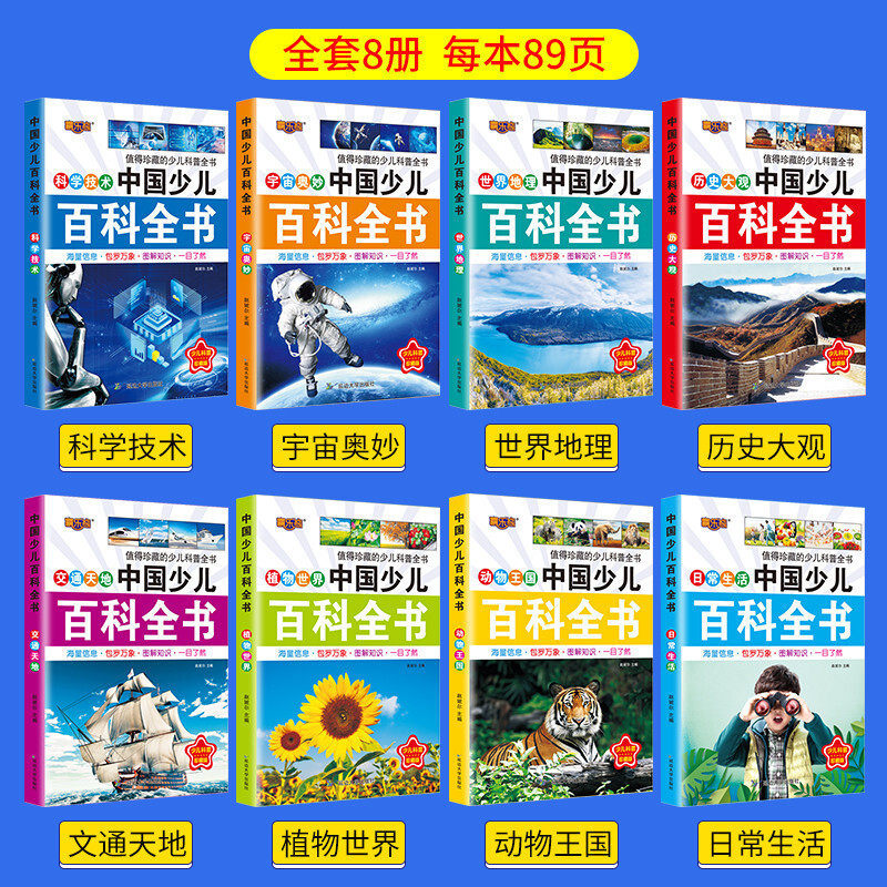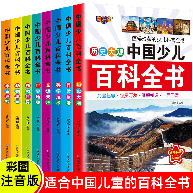 中国少儿百科全书8册6-12岁儿童科普知识小学生课外阅彩绘注书籍正版中小学生中国少儿百科全书彩图版动物植物课外阅彩绘注书籍
