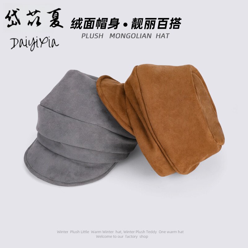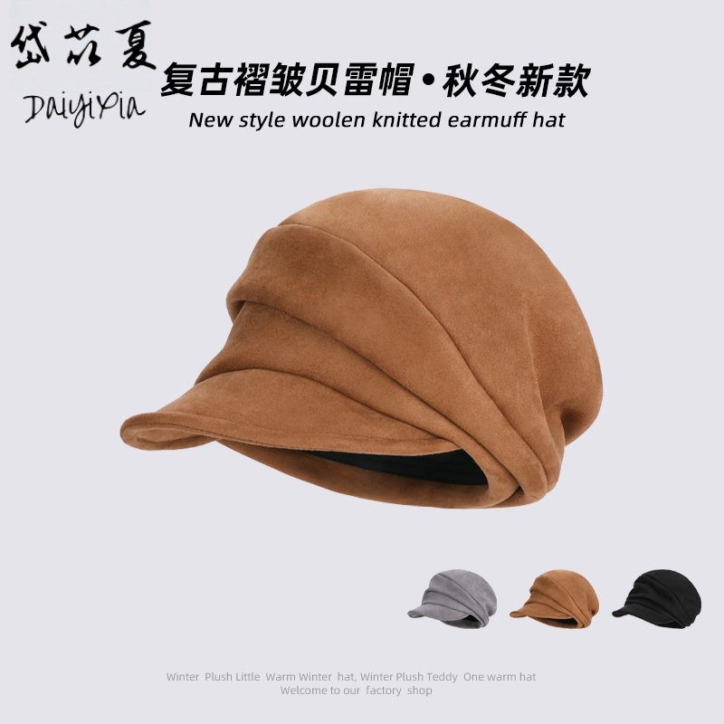 日系复古贝雷帽褶皱鹿皮绒文艺画家帽百搭时尚显脸小鸭舌帽子女潮