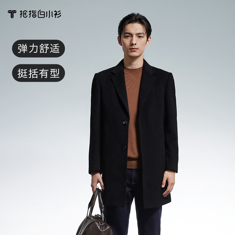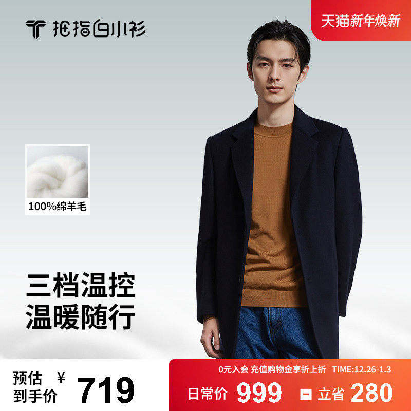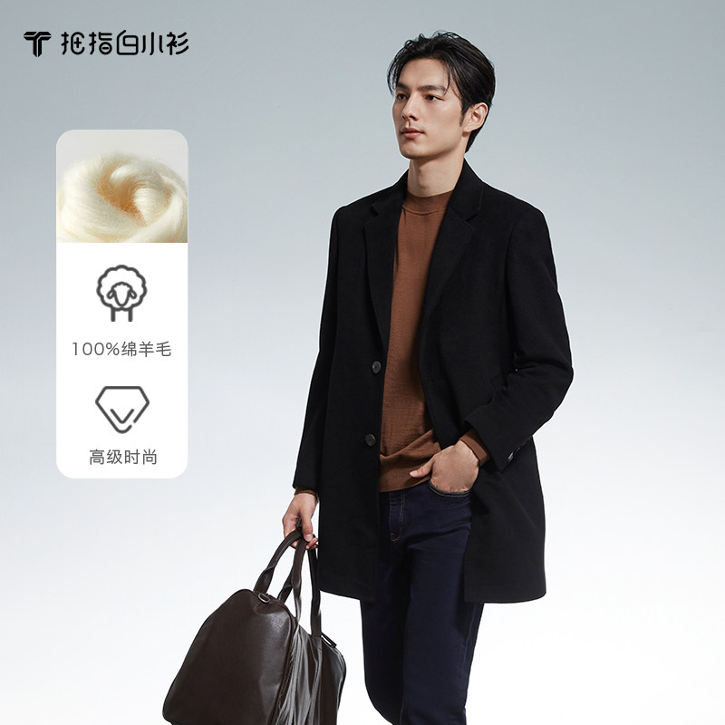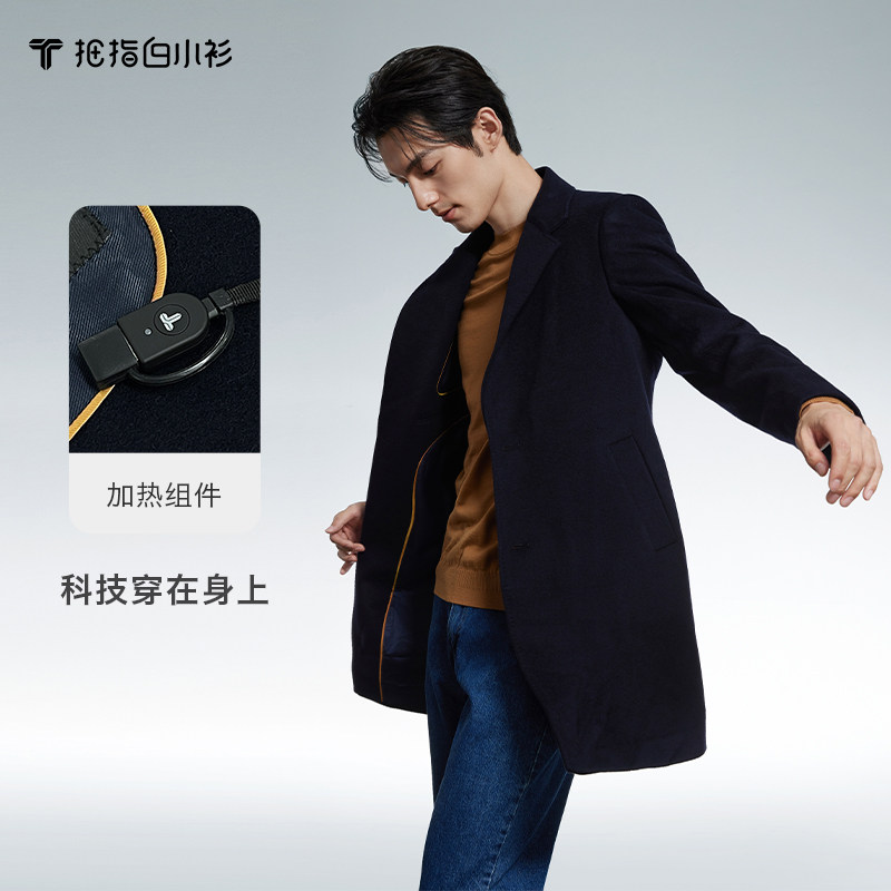 拇指白小衫纯羊毛大衣男装冬季新款商务休闲中长款西装领加热外套