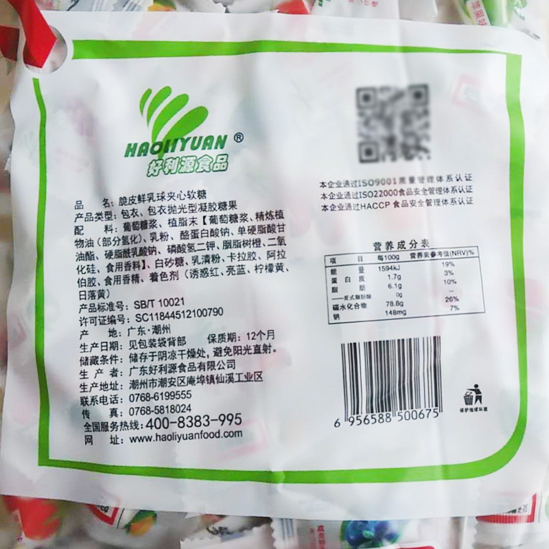 好利源鲜乳球奶香脆皮夹心奶糖水果糖结婚庆喜糖果年货休闲零食