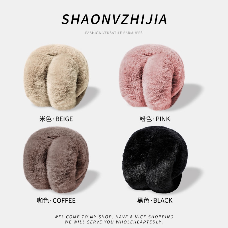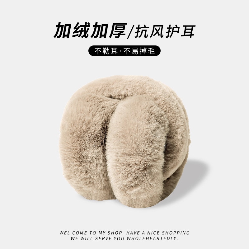 耳罩女冬季2025新款加绒耳捂子毛绒保暖耳包可折叠仿兔毛耳套白色