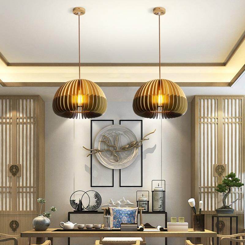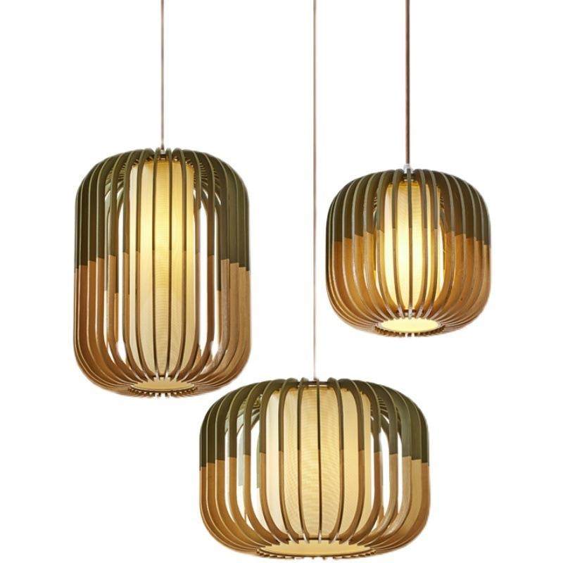 新款现代简约中式餐厅木艺灯具饭店民宿卧室装饰灯笼鸟笼木质吊灯
