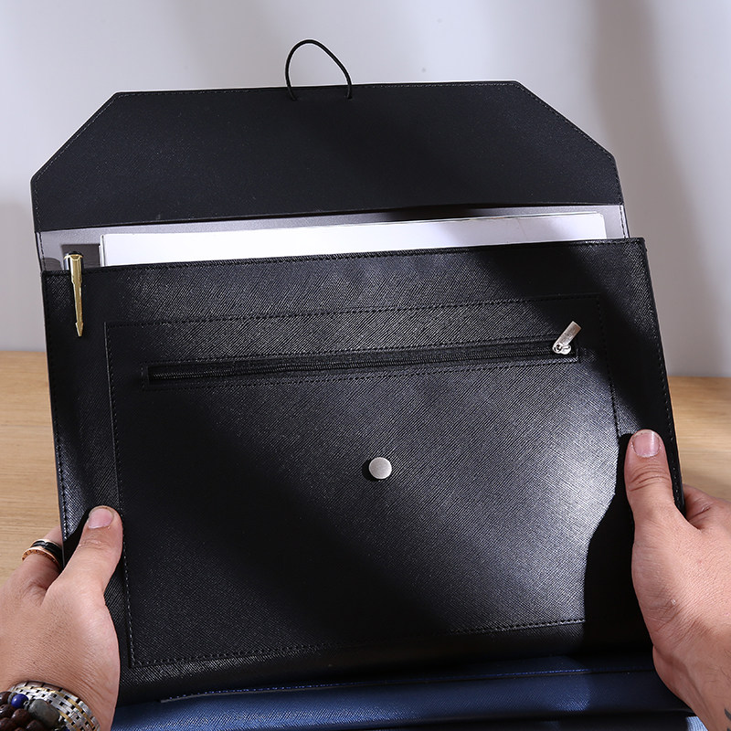 皮质文件袋大容量会议资料袋A4皮革文件包合同收纳包办公文件袋信封档案袋加厚拉链合同袋商务公文包定制logo