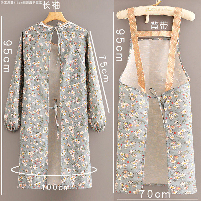 新款棉布耐磨围裙长袖厨房家用防污罩衣透气围腰做饭上班工作服女