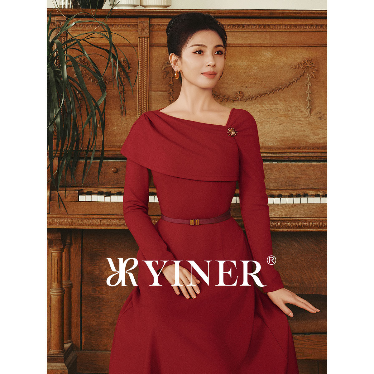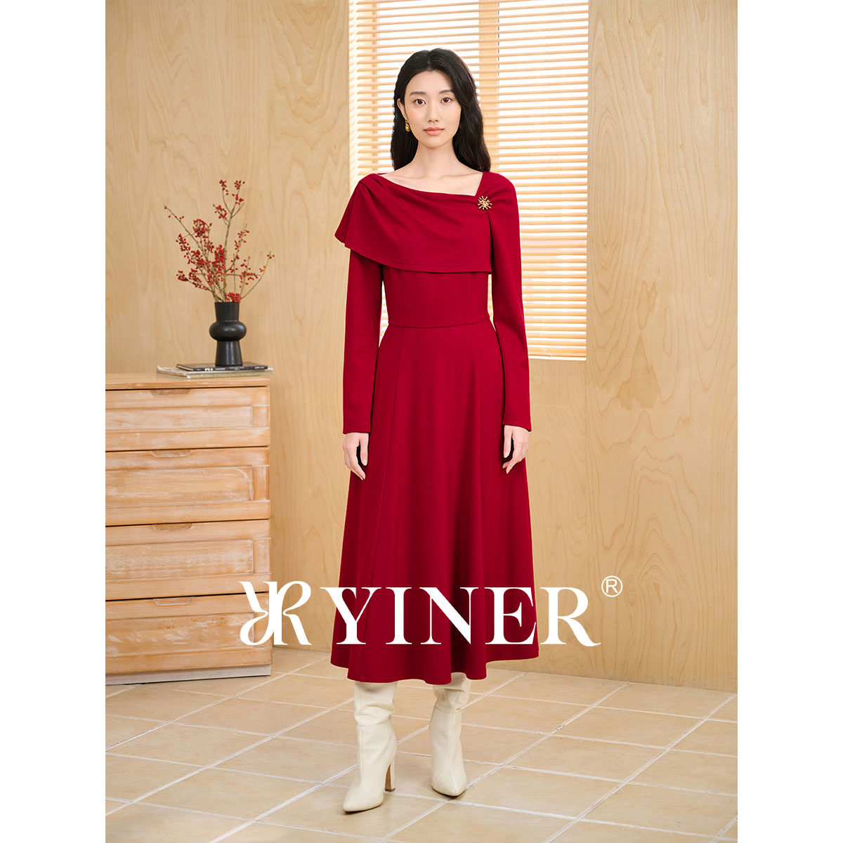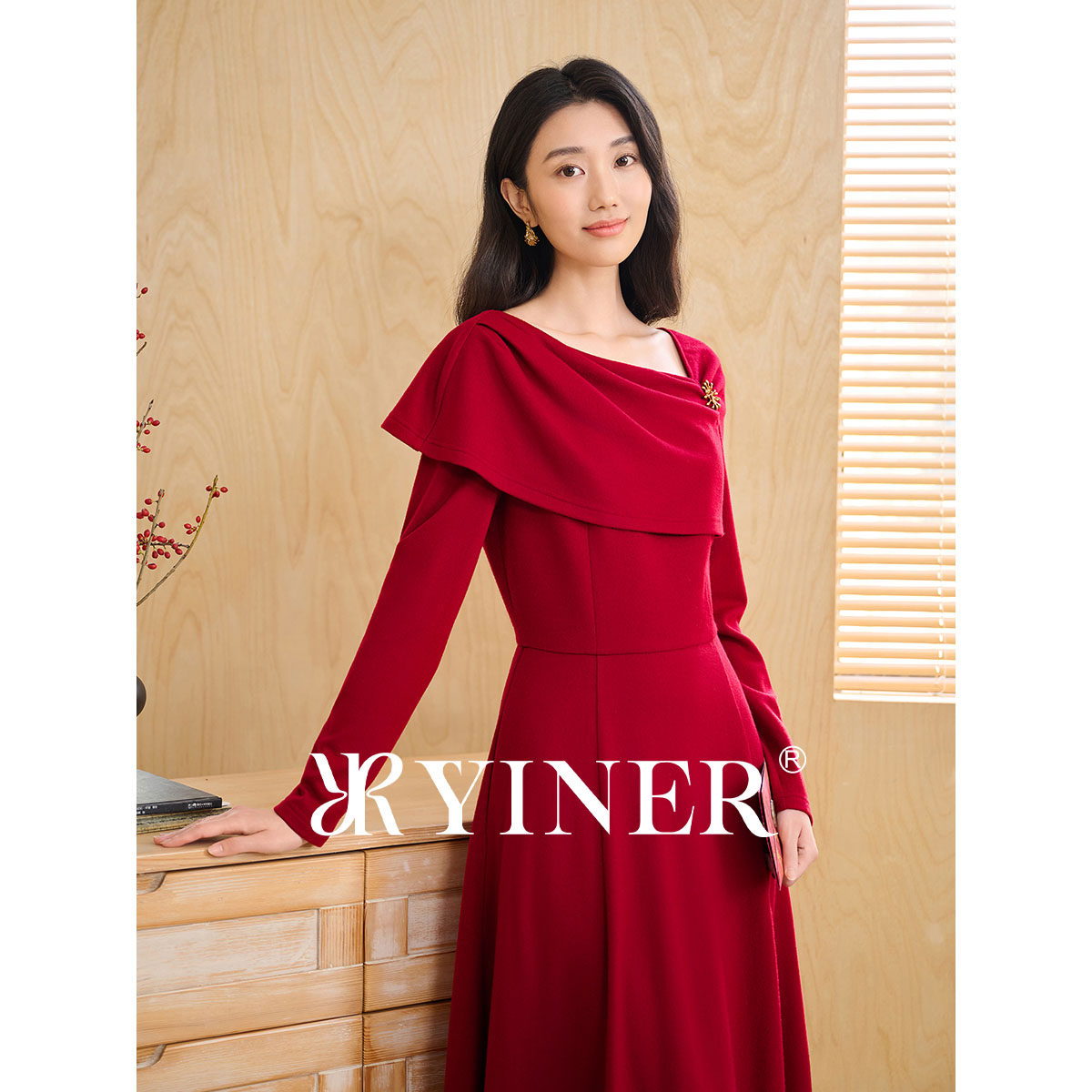 【刘涛同款】YINER音儿2026春季新款优雅美丽诺羊毛混纺连衣裙