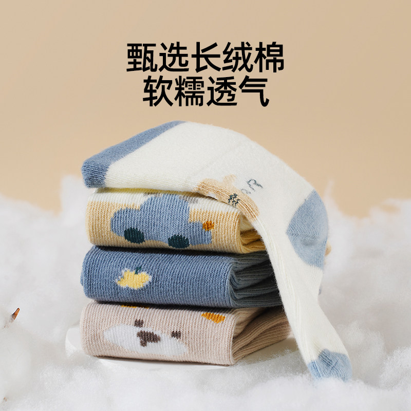 婧麒婴儿袜子秋冬新生儿棉袜儿童初生宝宝不勒腿无骨中筒袜春秋季