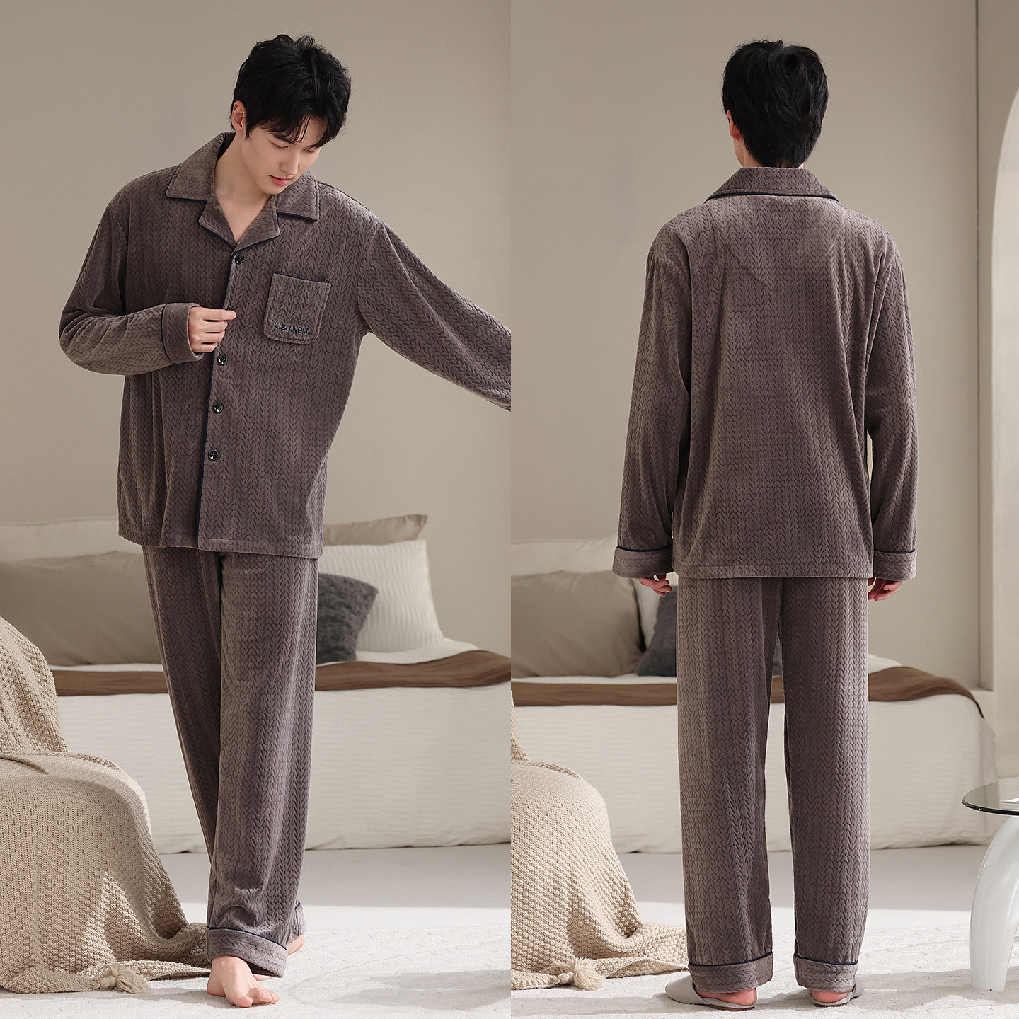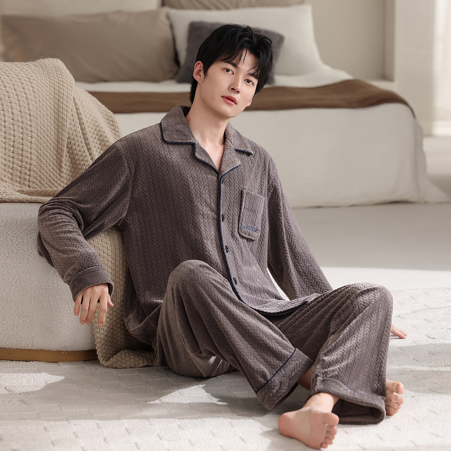 海岛绒睡衣男款冬季长袖保暖春秋款珊瑚绒家居服法兰绒加大码套装